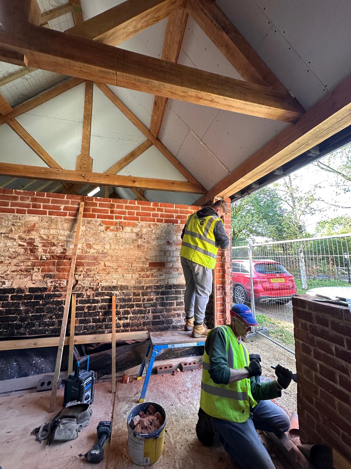 - Structural stabilisation: selective underpinning to retained masonry; rebuilding sections of the south and west walls on new foundations using reclaimed/matching brickwork.